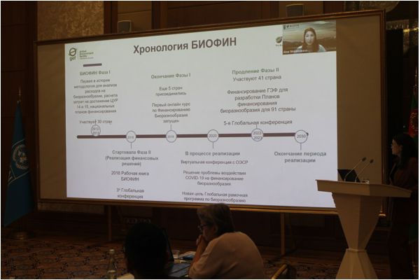 32 29-njy oktýabrda "Ýyldyz" myhmanhanasynyň maslahatlar zalynda tanyşdyryş seminary geçirildi, bu taslama BMG-niň Ösüş Maksatnamasy / GEF-iň integrasiýalaşdyrylan biodürlüligi maliýeleşdirmek meýilnamasyny goldamak maksatnamasy (BIOFIN) taslamasynyň işe girizilmegine bagyşlanandyr, bu taslamany Türkmenistanyň Daşky gurşawy goramak ministrligi beýleki edaralar bilen hyzmatdaşlykda amala aşyrýar. Çärä esasy hökümet ministrlikleriniň, maliýe edaralarynyň, akademiki toparlaryň we halkara hyzmatdaşlaryň wekillerini bir ýere jemledi.