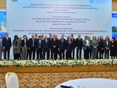 24 2026-njy ýylyň 22-nji ýanwarynda “Howanyň üýtgemegi şertlerinde saglyk we iýmitleniş” atly halkara maslahat geçirildi. Munuň özi ýurdumyzyň bu ugurda umumy tagallalary birleşdirmäge uly goşant goşýandygynyň nobatdaky güwäsidir. Maslahata Türkmenistanyň ugurdaş ministrlikleriniň, Birleşen Milletler Guramasynyň Azyk we oba hojalyk boýunça guramasynyň (FAO), Ösüş maksatnamasynyň, beýleki halkara guramalaryň ýolbaşçylary hem-de wekilleri, Gazagystanyň, Gyrgyzystanyň, Özbegistanyň, Täjigistanyň, Eýranyň, Russiýanyň wekilleri gatnaşdylar.